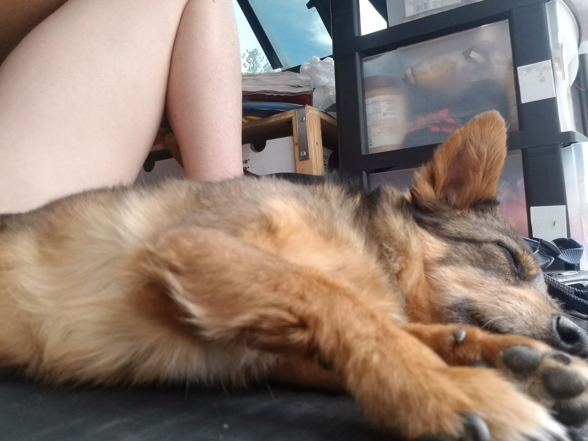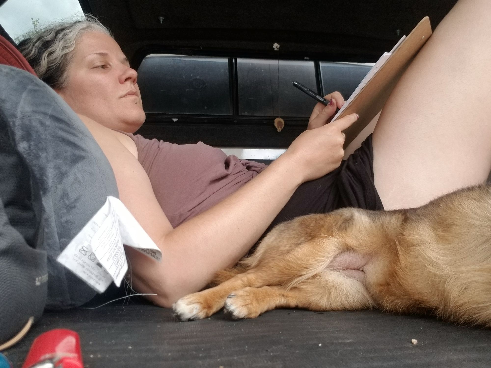 I deepened my freedom a little more—breaking no laws, merely norms. As I noted, many vehicles drove by in both directions. Some occupants surely miffed, some glad, at the lone woman and fox-like little dog taking up so much space amidst this outrageous spaciousness of sky and earth.