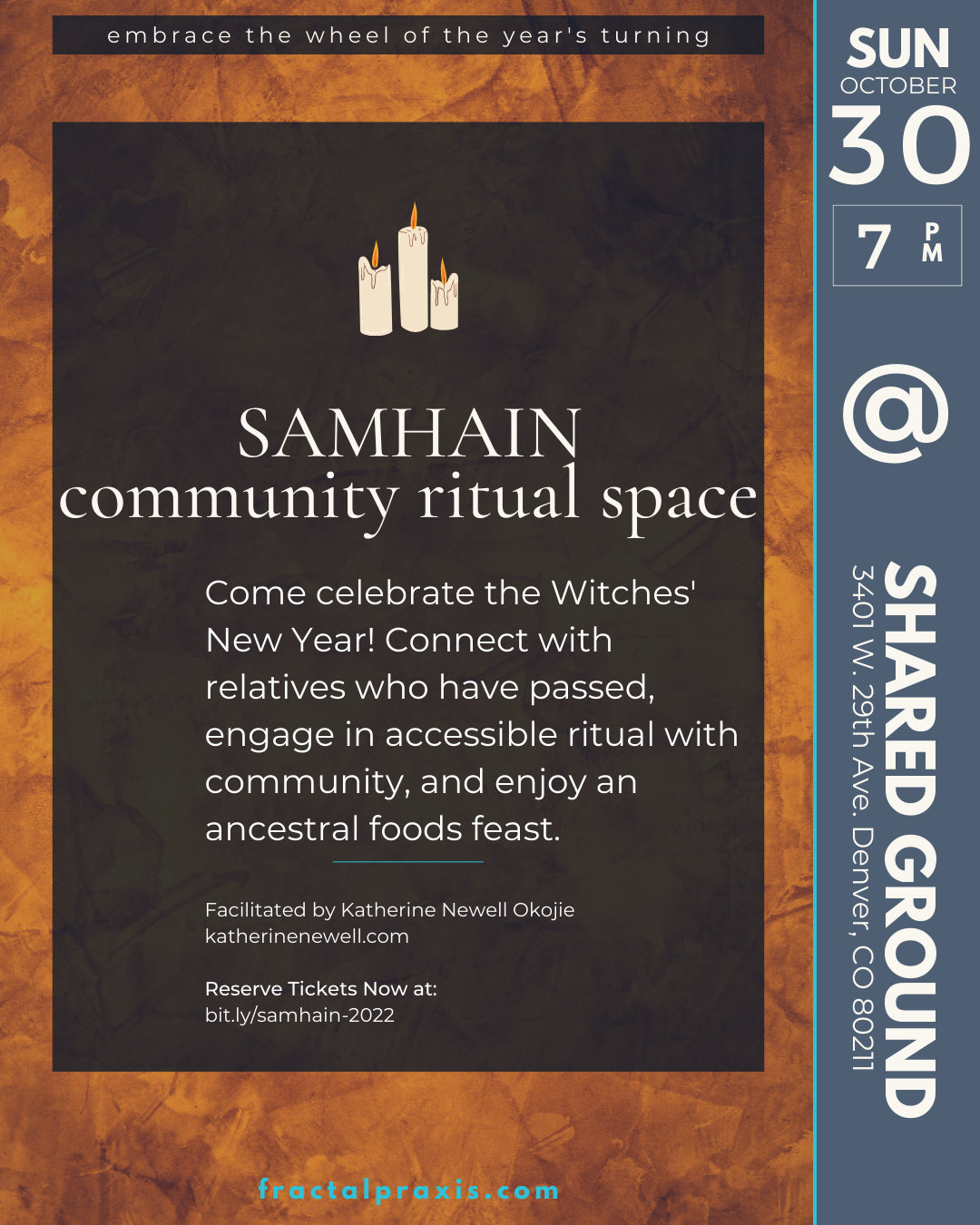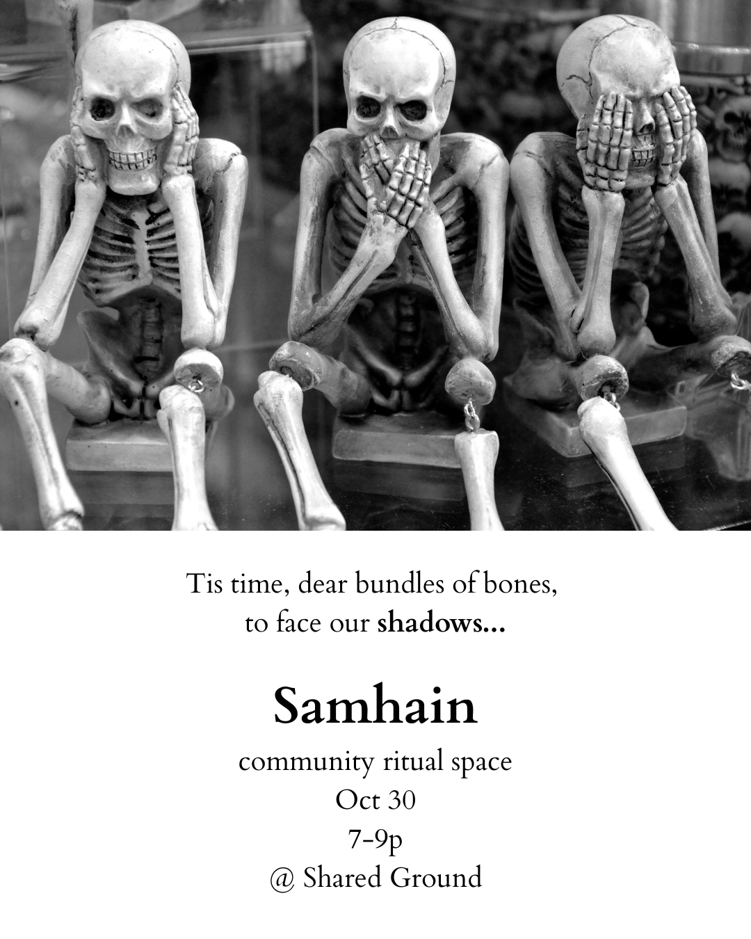 Samhain Community Ritual Space: October 30th, 7pm at Shared Ground!